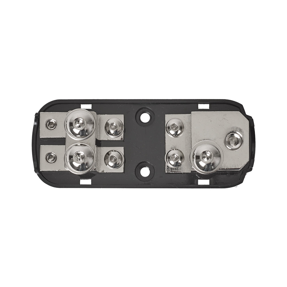 FB2MANL2 to niezawodne i trwałe rozwiązanie do dystrybucji pojedynczego przewodu zasilającego o przekroju 50 mm² (0 AWG) i przekształcania go w dwa wyjścia o przekroju 20 mm² (4 AWG). Dzięki temu idealnie nadaje się do bezpiecznej instalacji wielu wzmacniaczy lub innych akcesoriów. Dołączone płytki pozwalają na wybór pomiędzy pojedynczym bezpiecznikiem ANL lub dwoma bezpiecznikami AFS/Mini-ANL, co zapewnia dużą elastyczność.
